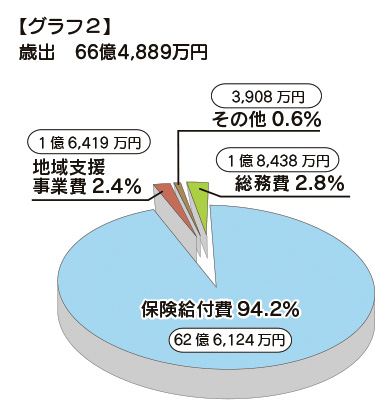 平成26年度 介護保険特別会計決算 最終更新日:2015年11月1日 (ID:1808) 印刷 平成26年度の歳出決算額は、66億4,889万円(前年度比2.7パーセント増)で、これに対して歳入は、介護給付費準備基金(注1)を4,728万円繰り入れて、歳入決算額を66億8,392万円(前年度比2.7パーセント増)としました。 歳入 歳入から歳出を差し引いた3,503万円は、国・県・支払基金からの超過交付金のため、平成27年度に繰り越した上でそれぞれ返還します。 歳入は、医療保険に上乗せされる第2号(40から64歳)保険料をもとにした支払基金交付金が27.5パーセントで最も大きく、第1号(65歳以上)保険料は20.3パーセント、国・県・市の負担金は合わせて50.7パーセントでした(グラフ1参照)。 歳出 歳出は、保険給付費が94.2パーセント、保険給付以外に市が実施する地域支援事業の費用が2.4パーセントで、歳出のほとんどを占めています(グラフ2参照)。 このようなことから、給付費や地域支援事業費が増加すると、みなさんが納める保険料や国・県・市の負担金が増加することになります。 (注1)介護給付費準備基金 市では、計画期間内の急激な給付費増などに対応できるように、計画期間の保険料の黒字などを介護給付費準備基金として積み立てています。基金残高がある市町村は、できる限り取り崩して保険料の軽減に活用するものとされています 第1号(65歳以上)被保険者の保険料とその使い道 第1号被保険者の保険料の算定の基となる総費用額は、グラフ2のうち、保険給付費と地域支援事業費の合計額です。その他の支出は保険料と関係なく一般会計などで賄っています。 総費用額は、その50パーセントを公費(国、県、市)、21パーセントを第1号被保険者の保険料、29パーセントを第2号被保険者(40から64歳)の保険料で賄います。 総費用額64億2,543万円のうち、1号被保険者の保険料で賄うべき額は、21パーセントの13億4,934万円ですが、これに、調整交付金・給付費返納金の影響などを加味して14億279万円となりました。 平成26年度の1号被保険者の保険料の収納率は、現年度分99.3パーセント、滞納繰越分41.8パーセント、収納額の合計は13億5,629万円で、差引4,650万円の赤字になりました。この不足分と、過年度の保険料の還付金との合計額4,728万円を準備基金からの取り崩しで補っています。 第1号被保険者が負担する1万円当たりの費用は、下記グラフ3の通りです。在宅で利用する居宅サービス(訪問介護や通所介護など)が最も多く、次いで施設サービス(特別養護老人ホームなど)となっています。 市では、高齢者人口の伸びとともに、介護給付費は増加していくと見込んでいます。健全な介護保険制度の運営のために、県が定める給付の適正化計画の取り組みを実施していきます。今後も、みなさんの理解と協力をお願いします。