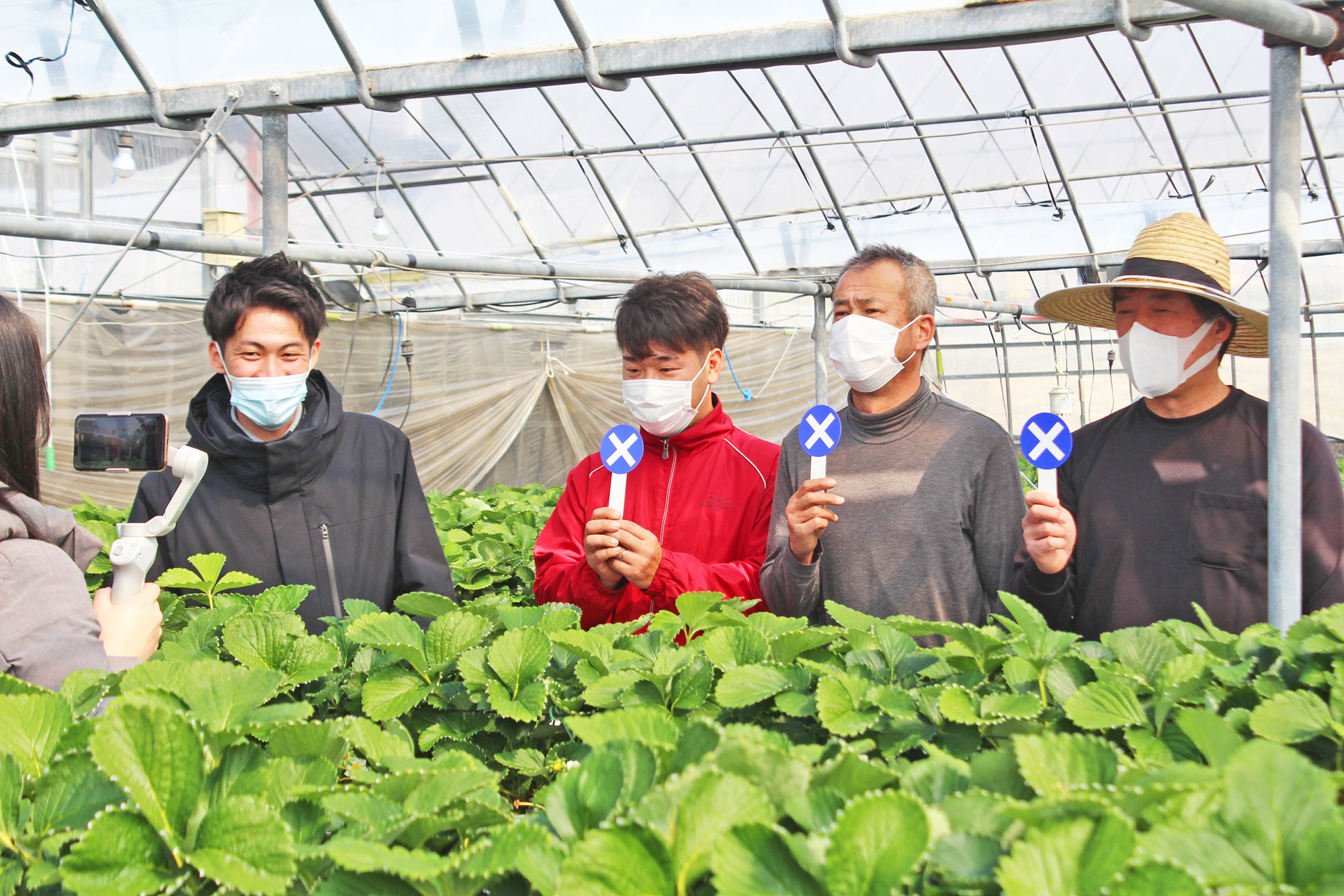 イチゴ農家のみなさんと交流!イチゴのオンライン農業体験ツアーに参加しました~3月28日レポート~ 最終更新日:2022年3月28日 (ID:2700) 印刷 こんにちは、ママレポーターの新田です。春の訪れを感じる「イチゴ」の季節がやってきました!市内のスーパーや産直市場で美味しそうな真っ赤なイチゴを見かけると、我が家の子どもたちはいつも吸い寄せられていきます。福岡県はイチゴの産出額が全国2位!その中でも宗像市は昭和30年代、県内でいち早くイチゴの出荷を始めたことから「イチゴのふるさと」と言われているそうです。今回は宗像のイチゴについて知るため、宗像市で行われた「イチゴのオンライン農業体験ツアー」に参加。自宅で実際にイチゴを味わいながら、イチゴ農家さんから生産過程や美味しいイチゴの見分け方を学びました。 オンラインツアーの募集要項(市広報紙2月1日号掲載) 自宅にいながら楽しめるオンラインツアー 今回のツアーは「視聴のみ」と「博多あまおう2パック付き」と選べましたが、迷わずあまおう付きプランを選択しました。イチゴはツアーの開催2日前にクール便で自宅に到着。せっかくなので、ツアーに参加しながら食べたいと思い、冷蔵庫でそのまま保管しました。 食べるのが待ち遠しい、美味しそうなあまおうが到着 ツアーは無料ウェブアプリZoomで開催。長引くコロナ禍でZoomを活用する機会も増えてきましたね。アプリを事前にダウンロードしておけば、送られてくるURLをクリックするだけでいいので、簡単に参加できます。今回は家族みんなで参加できるよう、タブレットをテレビにつなげて視聴しました。 なぜかタブレットの前に陣取り開始を待つ子どもたち ツアーは県内の他、関東・関西からの参加もあったようで、まずは宗像市や市へのアクセス方法などを紹介。市内のイチゴハウスから中継し、ハウス内を見せてもらったり、イチゴができるまでの過程を教えてもらいました。 参加型ツアーで子どもも楽しめます 子どもでも参加できるような「あまおうクイズ」も出題されました。ここで、ツアー内で出題されたクイズを1つ紹介します。 Q「あまおう」の名前の由来で間違っているものは?(クイズの解答はレポートの最後へ) あまい まるい おおきい うまい Zoomの投票機能を使用することで、実際に解答するだけでなく「どの項目に何%の人が解答した」なども分かり、参加者同士のつながりも感じられました。うちの幼稚園児にはちょっと難しいクイズでしたが、「家族で考え、子どもが投票ボタンを押す」という楽しみも。こちらで話している会話が主催者や他の参加者に聞こえないようマイクもオフにしていたので、途中子どもが大声を出したりしても気にならず、ツアーを見ながら家族間の会話も弾みました。 規格違いのイチゴを比べながら試食 参加者はチャット機能を使って随時、質問やコメントをすることもできました。「イチゴを食べながら見ていますよ」という他の参加者のコメントを見て、我が家も試食することに!ところで今回郵送されてきた2パックのイチゴですが、それぞれ大きさが違いました。 左:デラックス、右:グランデ 左のパックはイチゴの大きさがそろっている「デラックス」 右のパックは形が若干悪い「グランデ」 どちらも店頭で販売しているそうです。 イチゴは重さや形によっていくつかの規格があり、今回はあえて2つのタイプを用意したそう。実物が目の前にあったので、比較がとても分かりやすかったです。形のそろったイチゴと、形が良くないけど大きいイチゴ・・・子どもたちはどちらを食べるかな?と思っていたら、あっという間になくなったのは大きい「グランデ」のイチゴでした(笑) みんな大好きなあまおう!美味しくいただきました この後、令和2年のイチゴの出荷分から稼働を開始したばかりの「パッケージセンター」内の様子を見せてもらったほか、3人のイチゴ農家の方が登場。〇×形式での座談会や美味しいイチゴの見分け方・食べ方についてのお話がありました。 パッケージセンターの様子は、「JAむなかた」YouTubeでも紹介しています(外部サイトへリンク) イチゴ農家のみなさんによる美味しいイチゴの見分け方・食べ方 ヘタの方まで赤いイチゴや艶や光沢のあるイチゴを選ぶと良い イチゴは先の方が甘いため、ヘタの方から食べると美味しい さまざまな質問に答えてくれたイチゴ農家のみなさん(宗像市認定農業者協議会より提供) ちょうど試食しながら聞いていたので、さっそくヘタの方から食べてみました。確かに最後に一番甘い部分を味わえるのでとても甘い!!甘いイチゴがさらに甘く感じられました。最後は市内の卵、米・麦・大豆、キャベツ、サトイモ農家さんも登場し、宗像市で採れる農作物の紹介も!おすすめの食べ方や選び方について教えてもらい、盛りだくさんの1時間でした。 市内の農家さんたちが大集合!全国に向けて宗像の農作物をPRしました(同協議会より提供) 宗像市認定農業者協議会について 