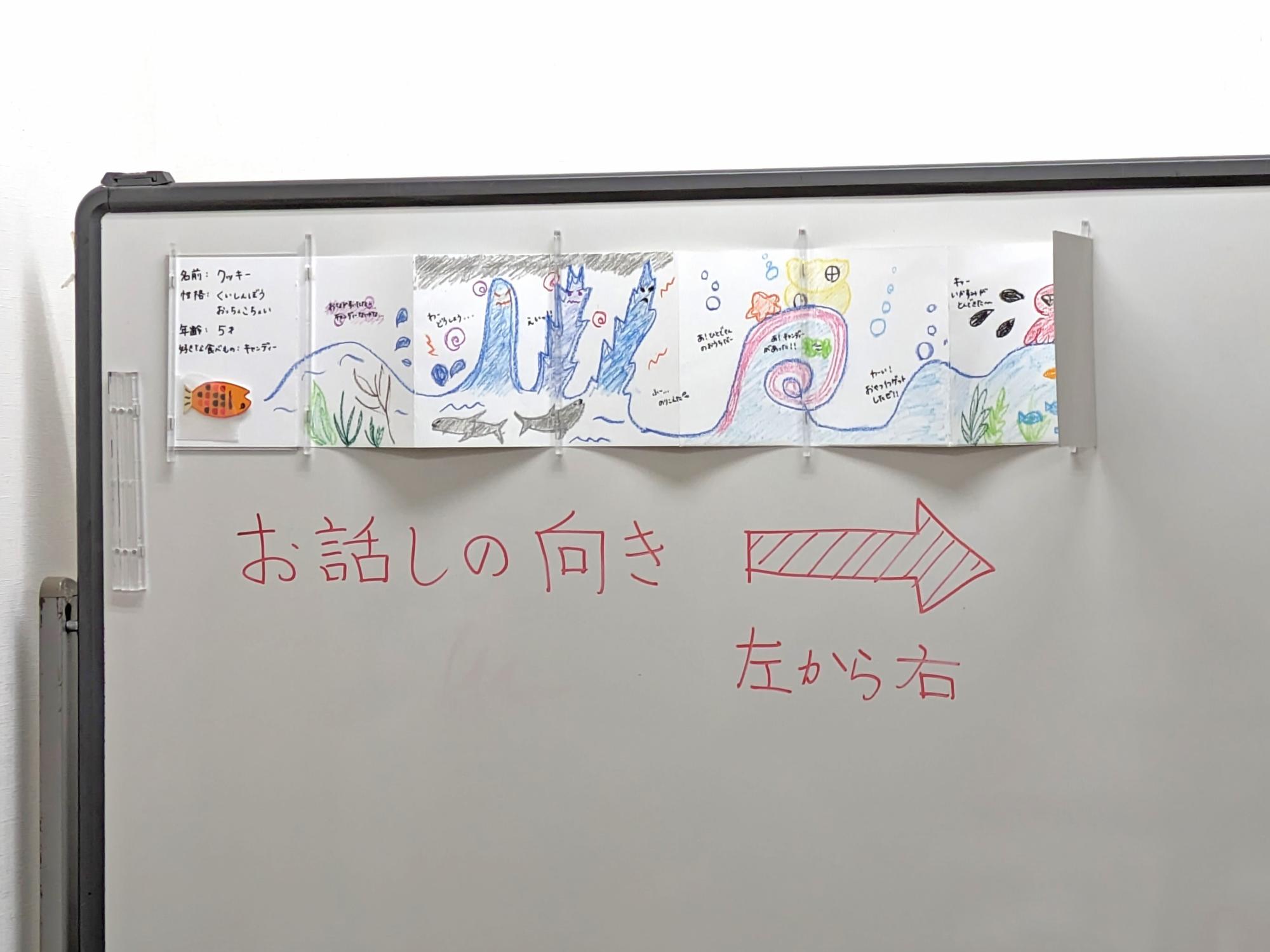 本物から学ぶ!本物を体験する!「むなかた子ども大学メインキャンパス」~1月27日レポート~ 最終更新日:2024年1月27日 (ID:2775) 印刷 こんにちは、キミママレポーターです。11月23日、グローバルアリーナや県立少年自然の家「玄海の家」で、「むなかた子ども大学メインキャンパス」が開催されました。我が家の息子たちも参加してきたので、今回はその様子を紹介したいと思います! 「むなかた子ども大学」とは? 子どもたちの可能性を広げ、将来の志につながる教育機会として令和3年に開学。教育関係者・企業・団体・市民・行政が一丸となり、子どもたちの興味や関心を深める講座や体験を提供しています。3回目となる今年は、11月11日の「むなかた子ども大学の日」と11月23日の「むなかた子ども大学メインキャンパス」を中心に年間を通じて実施されています。メインキャンパスでは、30を超える企業・団体、教育機関が協力し、多様な講座や体験が行われました。各コースは事前申込制で、応募者多数の場合は抽選となります。幸いなことに、我が家の息子たちは希望の講座に決定し、長男は「絵本作家コース」、次男は「ドローンプログラミングコース」に参加することができました。 メインキャンパスは11月23日に行われました グローバルアリーナの「はじめの会」の様子 少年自然の家「玄海の家」での「はじめの会」の様子 プログラミングコースでは、ドローンを動かすためのプログラミングについて学びます 子どもたち自身でプログラミングに挑戦! プログラミングされたドローンが目的地に向かって飛んでいきます! 世界に一冊しかないオリジナル絵本を作ろう!「絵本作家コース」 長男が参加した「絵本作家コース」。講師は福岡教育大学の松久公嗣(まつひさ・こうじ)教授です。日本画家であり、図画工作・美術の教師を目指す学生たちの指導もしています。会場では、5年生から9年生までの11人の子どもたちが、松久先生を中心に福岡教育大の学生先生から絵本の作り方を教えてもらいました。同じく福岡教育大の学生さんも運営ボランティアとして参加。むなかた子ども大学では多くの有志が協力し講座が実施されています。このような職業体験の機会に恵まれたことは、子どもたちの人生観にとても良い刺激を与えてくれたと感じました。 絵本作家コースの様子。11名の子どもたちが受講しました 講師を務めた福岡教育大学教授の松久公嗣先生 福岡教育大の4人の学生先生が優しく丁寧に指導してくれました! 運営ボランティアの学生さんも裏方から講座をサポート! 受講後に修了証書が授与されました しっかりと体験し、学んだ証です! 短時間で完成!オリジナル絵本の作り方 通常は長期に及ぶ絵本製作ですが、この日は特別に短時間で完成させる方法を教えてもらいました。みなさんもぜひ親子で作ってみてくださいね! 準備するもの ステップ1:主人公の設定やイメージを決めよう! ステップ2:物語の筋道を描こう! ステップ3:枝葉を描き足して物語に厚みをつけよう! ステップ4:表紙を作ったらオリジナル絵本の完成! 準備するもの 四つ切サイズの画用紙を縦半分でカット。それぞれ4等分に山折り谷折りにし、つなぎ合わせたものがベースになります 完成イメージ。左から右に物語が進んでいきます 本型に折りたたむこともできます 大学生のみなさんが作成した完成イメージ 鉛筆、消しゴム、クレパス、マーカー、ハサミ、テープ、のり、色画用紙など。キャラクターデザインのヒントになる冊子も準備されていました 絵本やキャラクターの作り方の書籍も紹介されていました。参考にしてみるのもいいですね 当日紹介いただいた参考書籍はこちら 『創作トレーニング「ストーリーの作り方」』著:野村カイリ、出版:新紀元社 『創作トレーニング「キャラクターの作り方」』著:野村カイリ、出版:新紀元社 『絵本をつくりたい人へ』著:土井章史、出版:玄光社 『絵本を作る」作・絵:五味太郎、出版:ブロンズ新社 『プロの現場から学ぶ!「絵本つくりかた」』著者:つるみゆき、出版:技術評論社 『楽しい絵本のつくりかた「絵本づくりのきほん・アイデアがたっぷり!」』監修:千葉幹夫、出版:学研パブリッシング 『あそぼう』『もくもくくもたん。』学生ボランティアの方のオリジナル作品 ステップ1:主人公の設定やイメージを決めよう! まずは絵本で最も重要な主人公作りから。色や動物など好きなものから想像したり、性格や感情などのイメージからアイディアを膨らませたり、主人公のキャラクターを固めていきます。 配られたプリントを参考にしながら、キャラクターのイメージを膨らませます イメージが固まったら、実際に画用紙に描きます。それをハサミで切り出す要領です 息子も先生からアドバイスをもらい、キャラクターが固まったよう。実際に画用紙に描いていきます 描きあがった主人公のキャラクターをハサミで切り出します 息子が描いたおばけ。この主人公が物語を紡いでいきます ステッ
