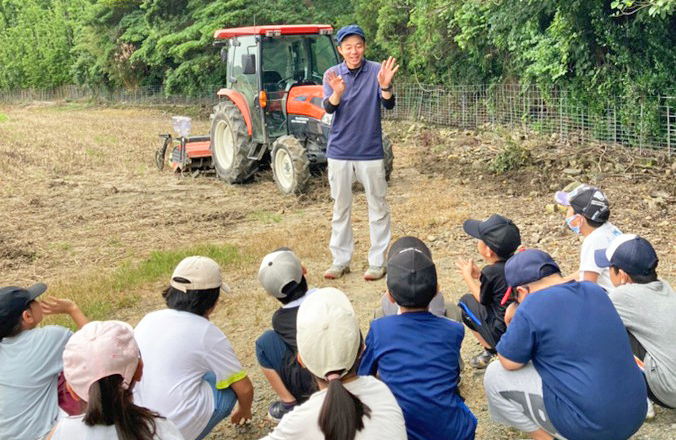 玄海小が宗像大豆のひみつにせまる「種まき編」~8月30日レポート~ 最終更新日:2023年8月30日 (ID:2783) 印刷 こんにちは、くすくすママレポーターです。みなさん、普段大豆を食べていますか?大豆は「畑の肉」とも呼ばれ、タンパク質や食物繊維、アミノ酸などの栄養素が豊富です。そして、なんと福岡県は大豆の生産量が全国第1位!宗像市でも大豆栽培が盛んに行われていて、単位面積当たりの収穫量や品質で日本一に選ばれたことがあるほど高品質なんです!宗像市の一部の学校では、1年を通して大豆の種まきから収穫までを学ぶカリキュラムを実施。今回は、玄海小学校3年生の子どもたちが種まきに挑戦するということで、その様子を取材しました! 関連レポートはこちら 8月30日レポート「種まき編」(本レポート) 11月12日レポート「枝豆収穫編」 1月18日レポート「大豆収穫編」 4月22日レポート「調理実習編」 大豆は自然から生まれたバランス栄養食材 地元農家の畑で種まきに挑戦! 7月14日に、元気いっぱいの3年生12人が種まきに挑戦!ちょうどよい曇り空で風もここちよく、作業しやすい気候です。種まきをさせてもらうのは、地元農家である清水陽介さんの畑。小学校から少し離れた場所にあります。 清水さんの畑へ出発!清水さんは、宗像市牟田尻で水稲・麦・大豆の土地利用型作物と、路地野菜の複合経営を行う専業農家。大豆は福岡県が開発した新品種の「ふくよかまる」。粒が大きく、甘くてコクがあるのが特徴です。地域の小学校で出前授業を行うなど、地域貢献活動にも積極的に参加されています。 清水さんの話に熱心に耳を傾けています 「ふくよかまる」は、大きくふくよかに、幸福が訪れるようにと願いを込めて命名。語尾のまるは、大豆の形を表現しています 子どもたちは、授業で宗像大豆や大豆加工品について学習していることもあり、主婦である私よりも断然詳しくてびっくり!給食の献立にもよく出ているそうです。お話の後は、実際にまく種を渡されました。種が赤くコーティングされているのは、鳥や虫に食べられないようになんだとか。穴に種を2粒ずつ入れて、土を被せます。 赤くコーティングされた種 穴に種を2粒ずつ入れます 何故2粒? 大豆から芽が出る時、1粒で土を押し出すのはとっても大変!2粒の方が芽が出やすいんだそうです。「種も協力し合って芽を出しているんだよ」という説明を受け、自分たちに置き換えて協力して種まきをしている子どもたちの姿が微笑ましかったです。 和やかな雰囲気の中、作業を進めます 手が真っ赤に!頑張った証だね! 種まき終了!みんないい顔してます みんなで協力して、あっという間に約300平方メートルの畑に約800粒の種まきが終わりました!植えてから3日ほどでかわいい芽が出てくるそうで、子どもたちは「楽しみだねー」と話していました。大豆の種の残りは持ち帰らせてもらい、学校内の畑でも育てます。子どもたちは丁寧に畑の草取りを行い、種まきまで頑張っていました。 学校花壇にも大豆の種まき。大きくなあれ 「食のまち宗像」だからこその授業 今後の宗像大豆栽培は、以下のようなカリキュラムで行われ、随時、取材に伺わせていただく予定です! 9月:育った枝豆を収穫して塩茹で調理 11月:大豆収穫 1月:味噌作り 2、3月:宗像大豆のPOPを作成し、道の駅むなかたに設置 こんな貴重な体験を年間通してできるのは、農産物が豊富な「食のまち宗像」だからこそ!子どもたちも、自分たちが育てた大豆を食し宗像大豆への想いが深まる。食べ物を大切にする心を養うことで、地産地消の宗像愛も深まる。とても素敵な取り組みだと思いました。 (レポートは原文のままで掲載しています) 関連リンク 11月12日レポート「枝豆収穫編」1月18日レポート「大豆収穫編」4月22日レポート「調理実習編」