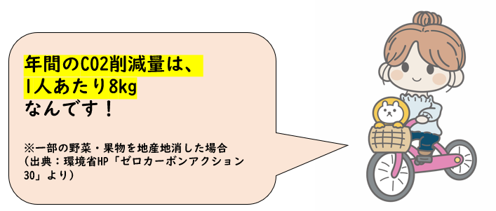 地産地消に取り組もう 最終更新日:2024年9月18日 (ID:7700) 印刷 地産地消の取組は脱炭素につながる?「地産地消」とは、その地域で生産された食材を地域内で消費することを言います。遠い地域で生産された食材は、トラックなどで運んでくるため、その分輸送にかかるCO2が排出されてしまいます。そのため、地産地消を心がけることは脱炭素につながるのです。また、地産地消をすることは、食材を新鮮な状態で食べることができるだけでなく、市内の農業者、漁業者を応援することにもつながります。 市内で地産地消に取り組むためには?市内の農産物直売所等に、採れたての新鮮な旬の野菜が中心に販売されていますので、ぜひお立ち寄りください。地元で作られた食材を選んで、買って、おいしく食べましょう。地産地消をすることで、脱炭素につながる暮らしを実践しましょう。関連リンク宗像市内農産物直売所等(外部サイトにリンクします)